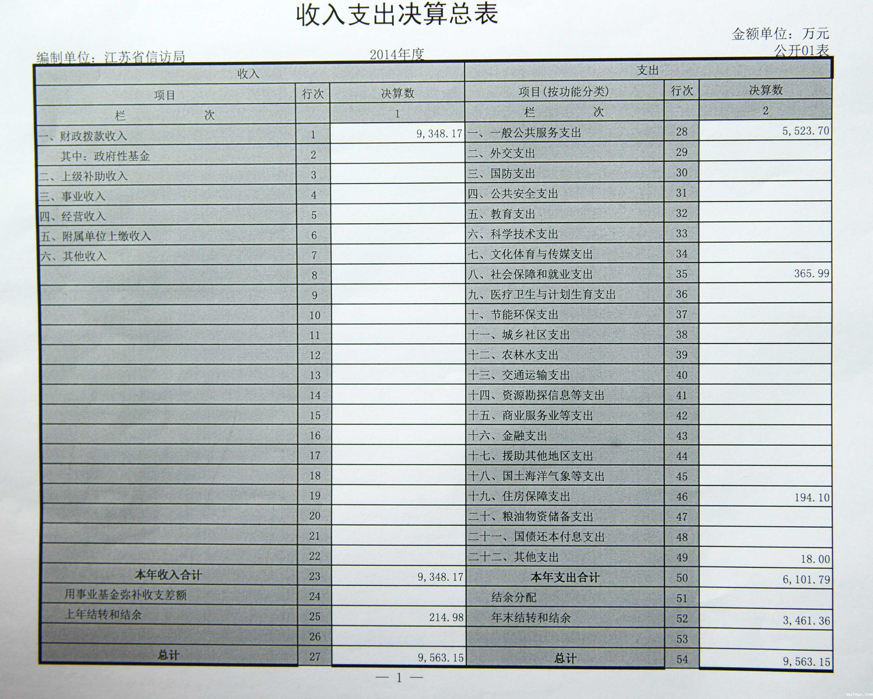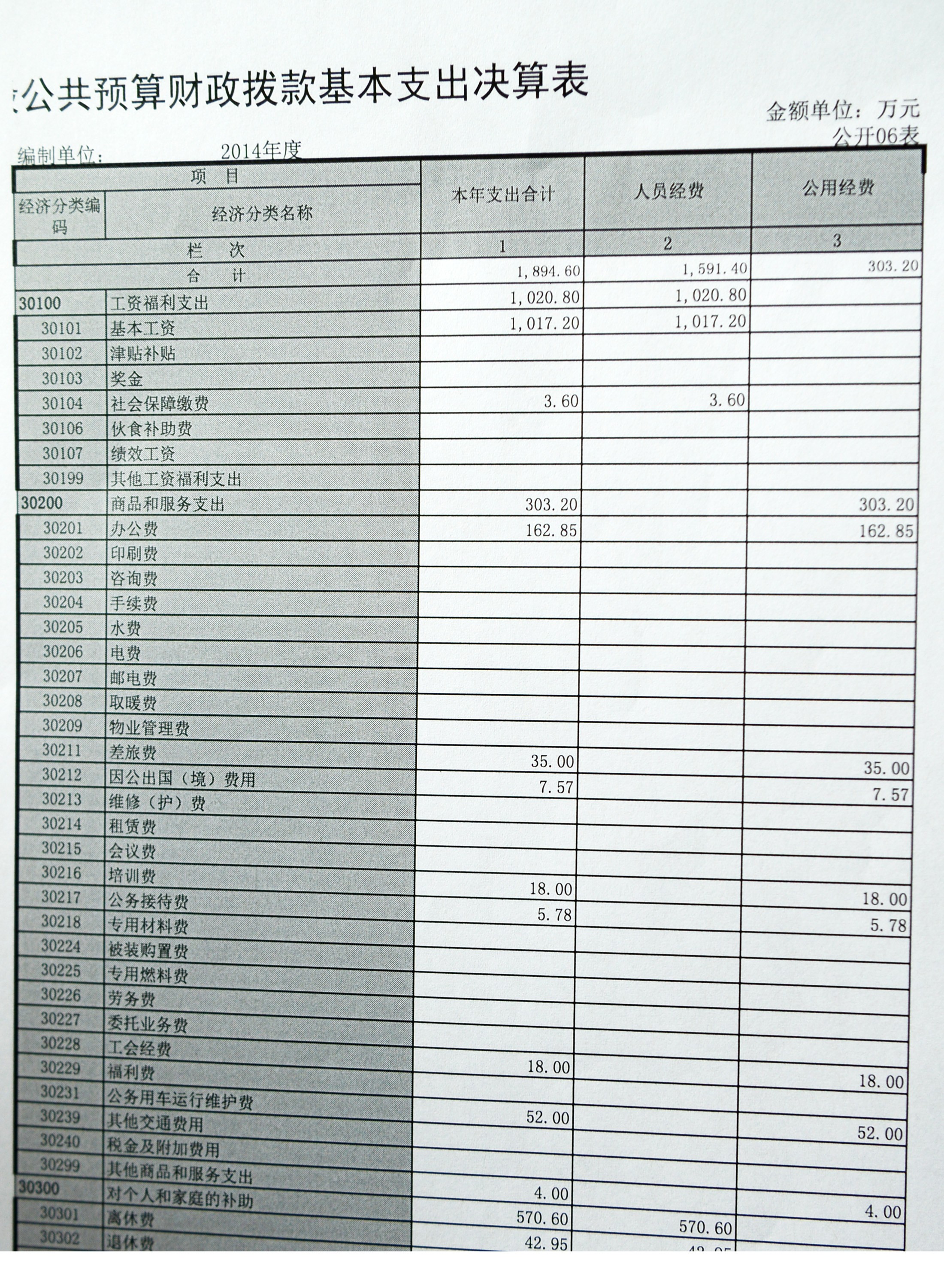 第二部分 2014年度决算表