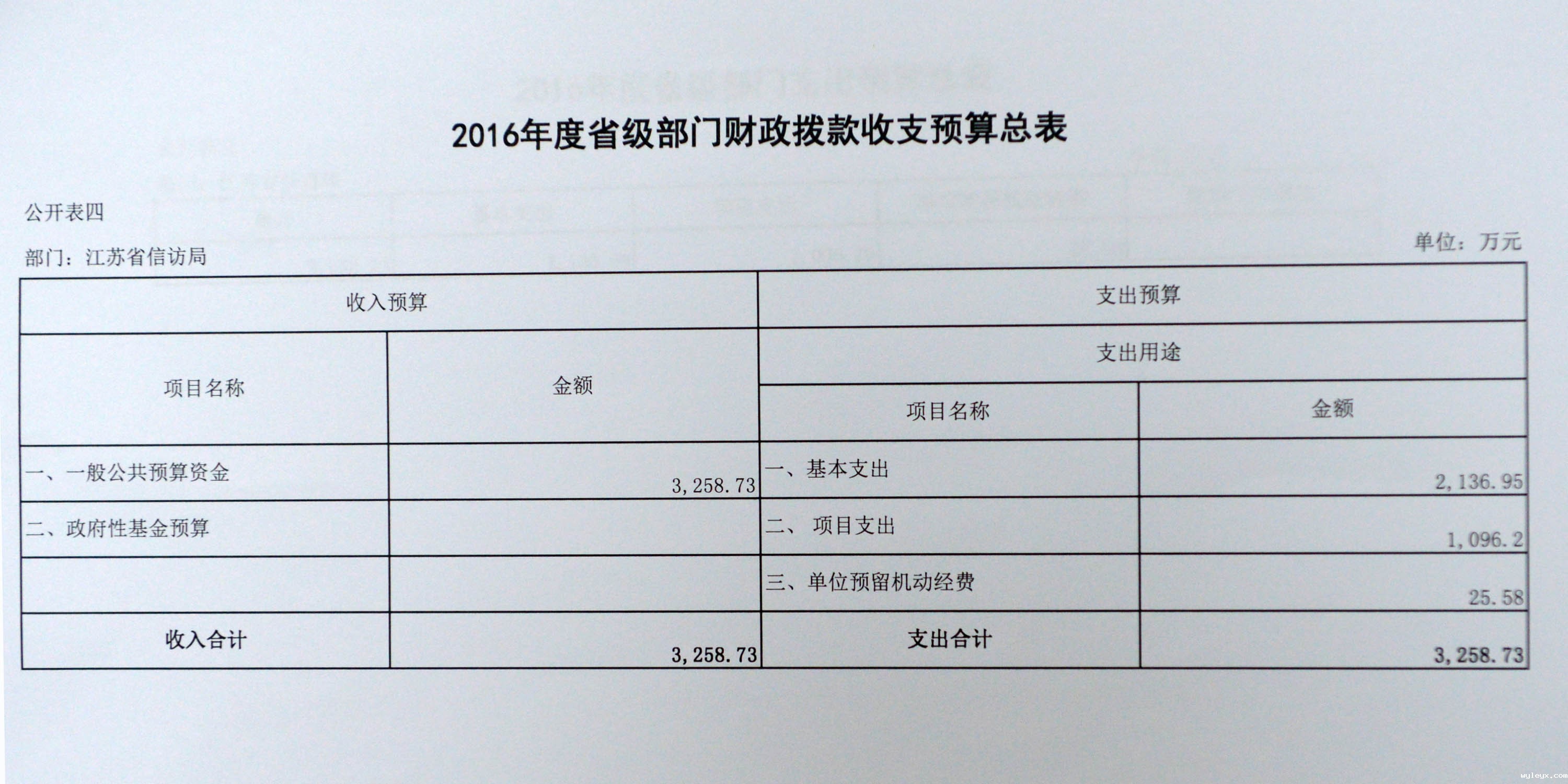 本表反映部门年度总体收支预算情况。根据《江苏省财政厅关于2016年省级部门预算的批复》(苏财预〔2016〕8号)填列。