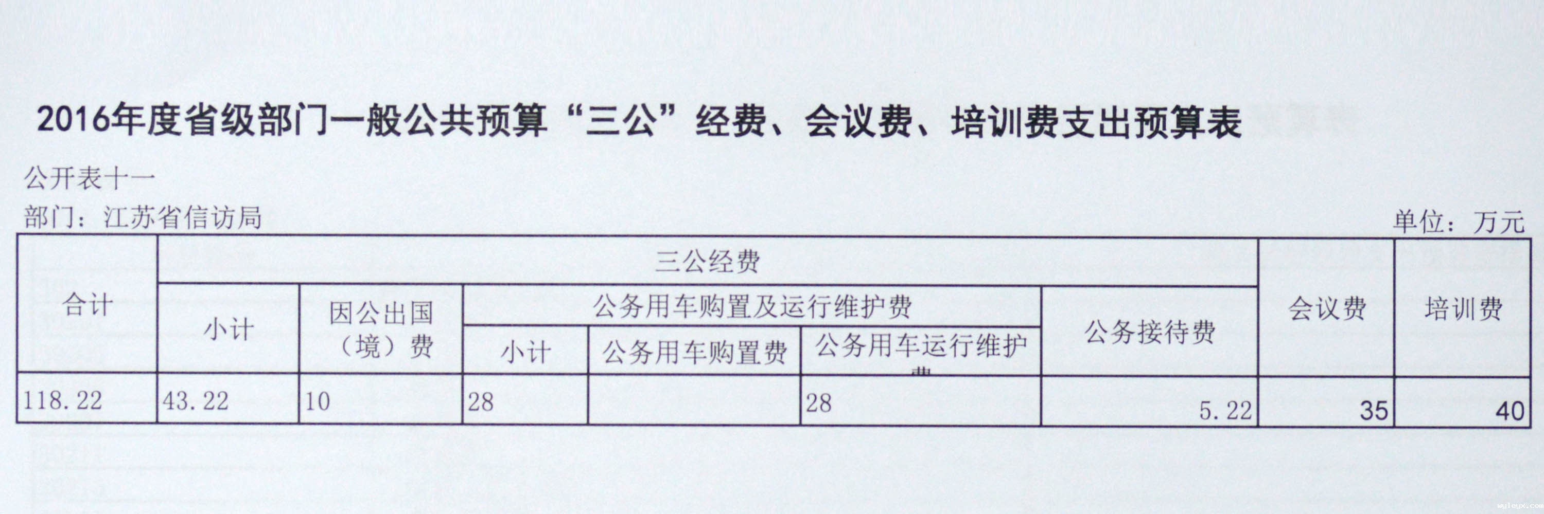 本表反映部门年度一般公共预算资金安排的“三公”经费情况。“三公”经费是指因公出国(境)费、公务用车购置及运行维护费和公务接待费。其中,因公出国(境)费指单位工作人员公务出国(境)的住宿费、旅费、伙食补助费、杂费、培训费等支出;公务用车购置及运行维护费指单位公务用车购置、租用费、燃料费、维修费、过路过桥费、保险费、安全奖励费用等支出;公务接待费是指单位按规定开支的各类公务接待(含外宾接待)支出;会议费指单位按规定召开会议直接发生的住宿费、伙食费、会场费用、交通费、办公用品费、材料印刷费、医药费等支出;培训费是指单位按规定开展培训直接发生的住宿费、伙食费、培训场地费、讲课费、培训资料费、交通费、其他费用等支出。相比去年,减少会议费开支30万元,培训费开支32万元,因公车改革减少公务用车运行维护费24万元。