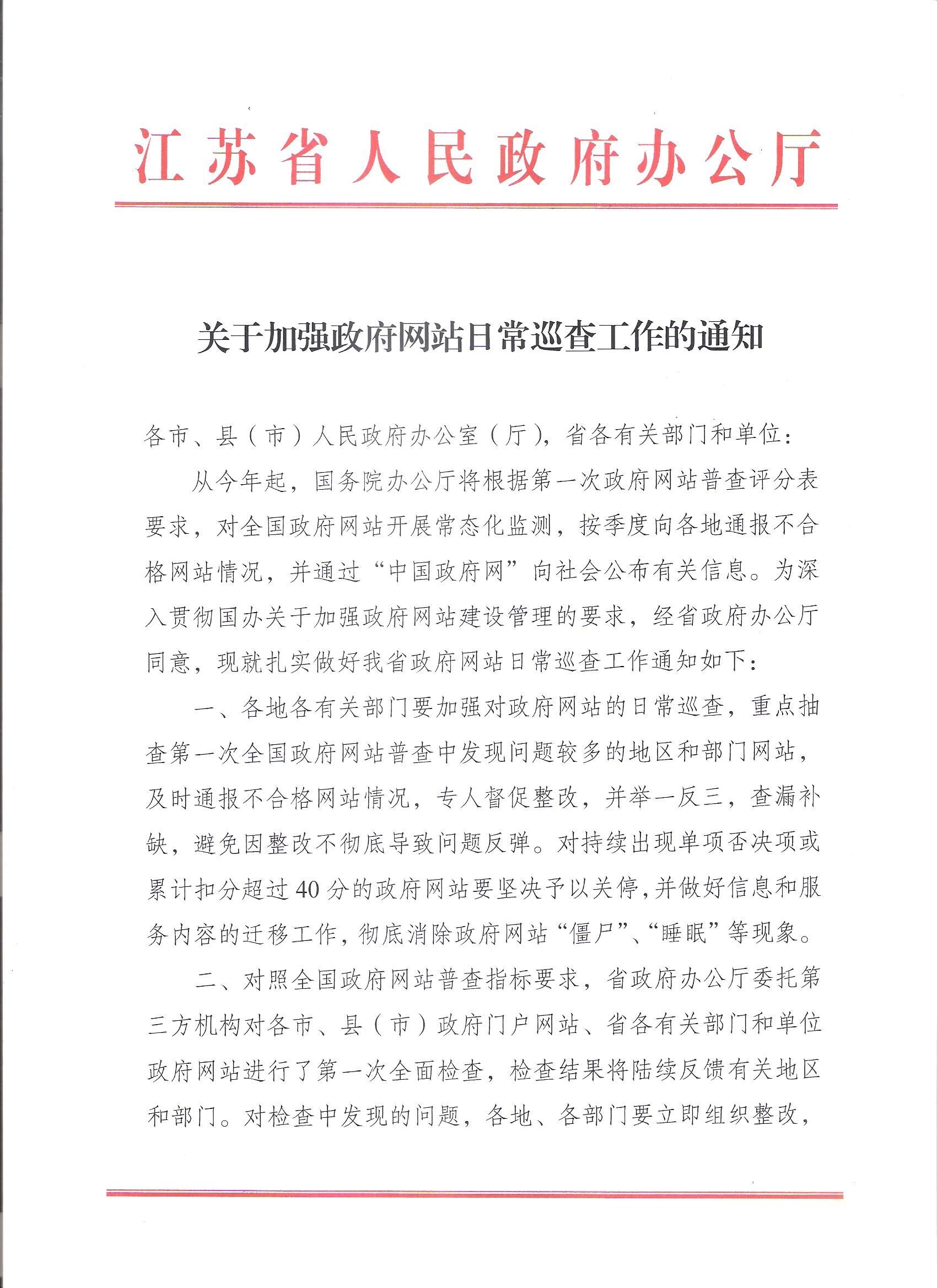 省政府办公厅关于加强政府网站日常巡查工作的通知