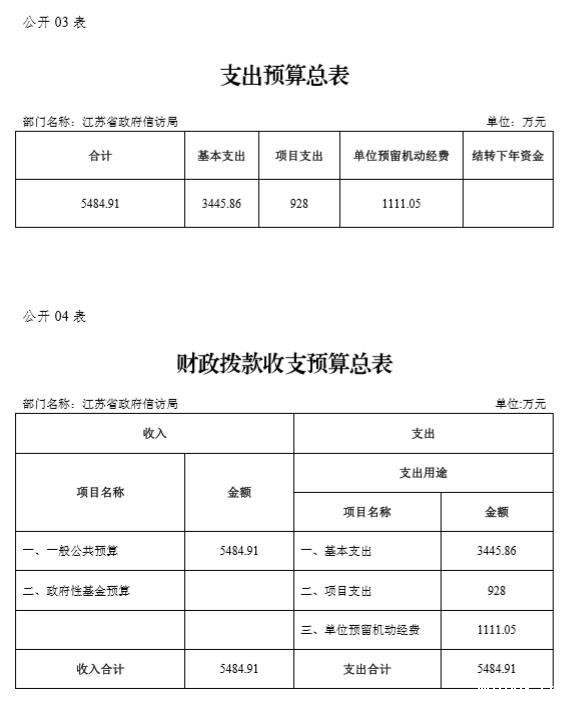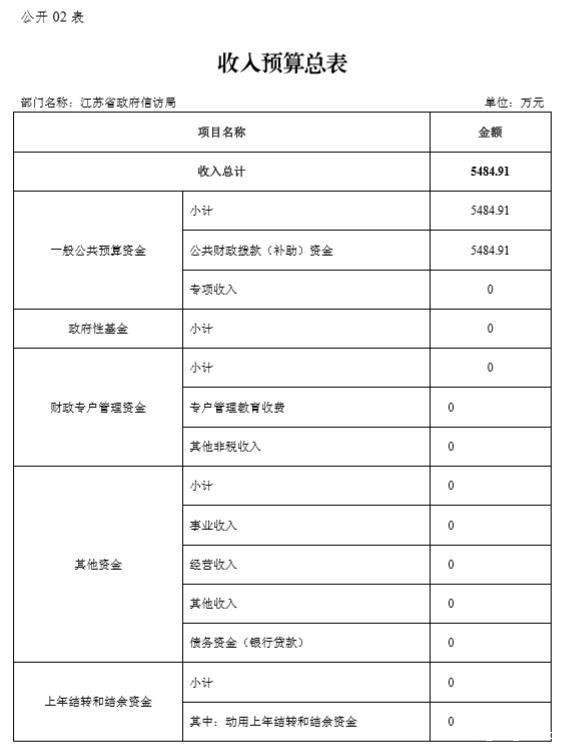 江苏省政府信访局本年收入预算合计5484.91万元,其中: