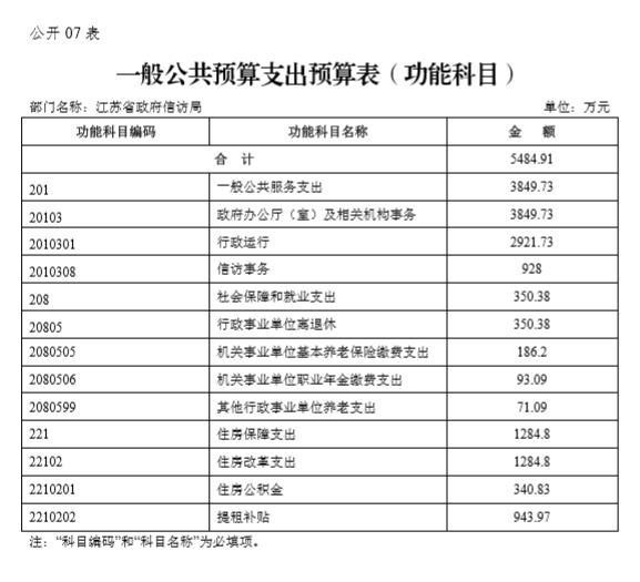 江苏省政府信访局2020年一般公共预算财政拨款支出预算5484.91万元,与上年相比增加419.62万元,增长8.28 %。主要原因是人员经费增加。