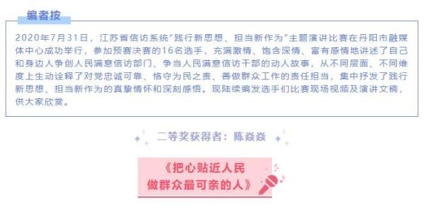 我是陈焱焱,来自连云港市信访局。我演讲的题目是《把心贴近人民,做群众最可亲的人》。