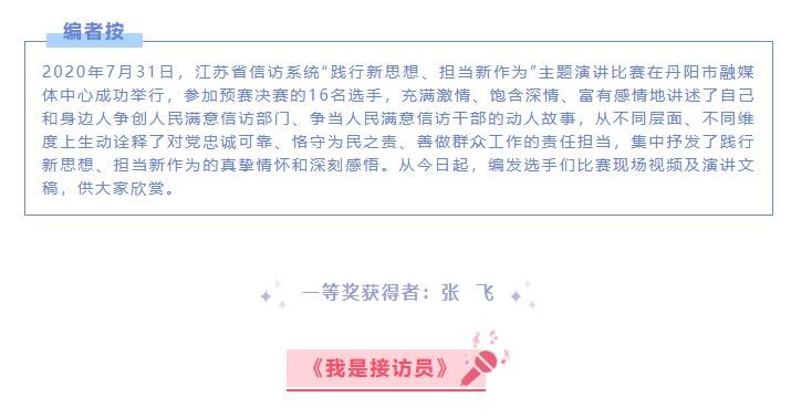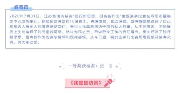 我是省人民来访接待中心23号接访员张飞,今天和大家交流的题目是《我是接访员》。