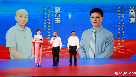 江西省景德镇市信访局副局长、珠山区信访局局长姚石玉(右二)创新性地搭建“百姓说事”平台,先后解决各类民生问题约2.5万件,牵头出台关于深入推进让群众“最多访一次”的实施细则,成立姚石玉调处工作室,有效化解了一批信访积案。广东省深圳市光明区信访局党组成员、信访服务中心主任黄国滨(右一)协调推动区委、区政府创新搭建246个群众诉求服务大厅(站),打造“500米群众诉求服务圈”,成立“国滨调解指导室”,总结出独特的“十个善于”黄式调解法。