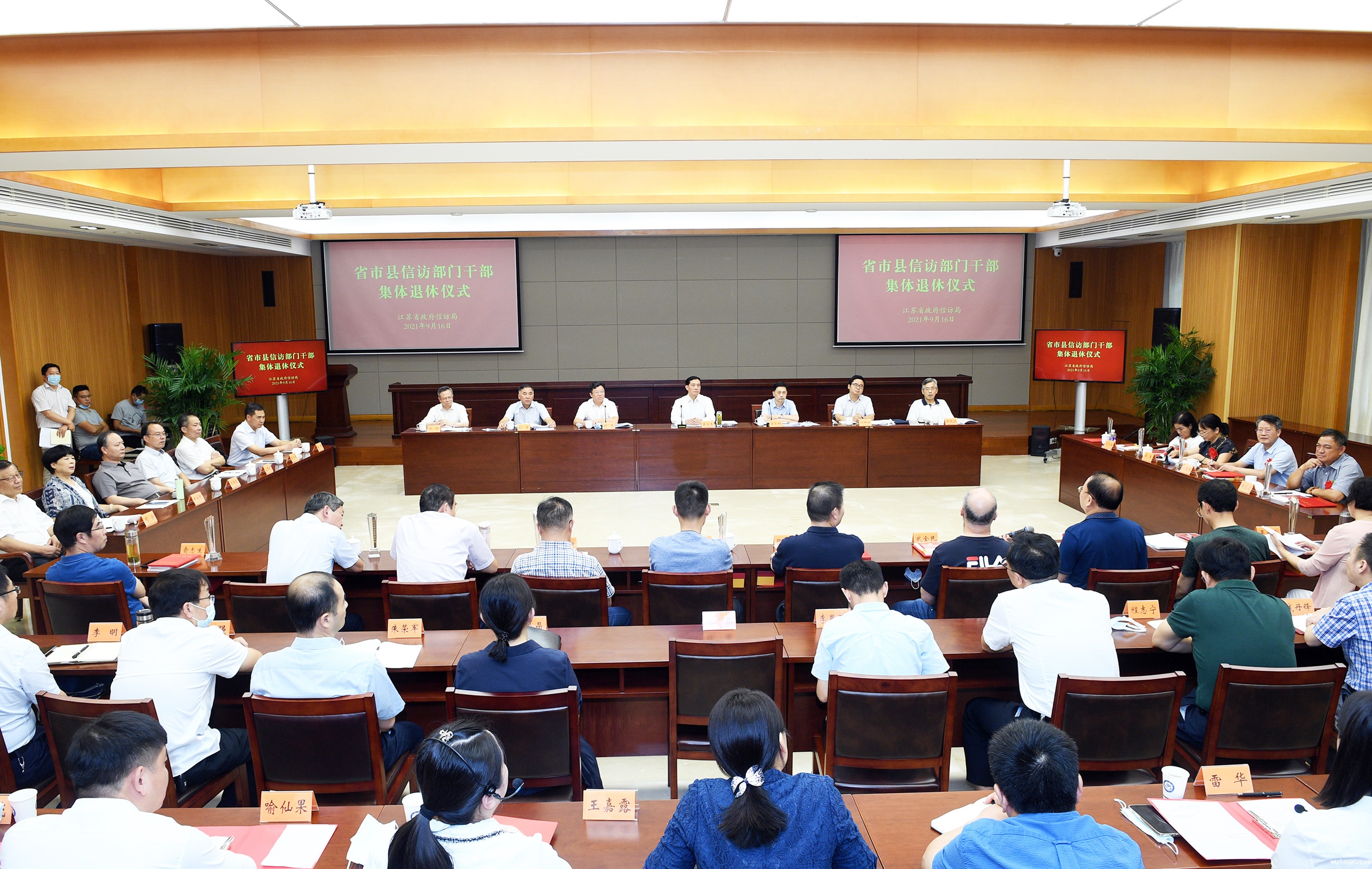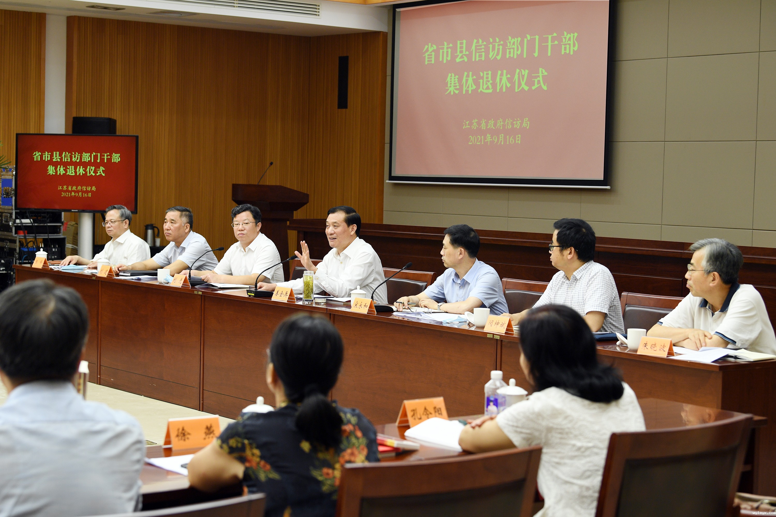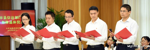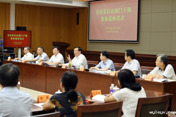 2021年9月16日,省政府信访局举办省市县信访部门干部集体退休仪式,为从事信访工作5年以上、去年7月至今年6月退休的信访干部颁发纪念奖杯和证书。省政府副秘书长、省政府信访局局长、党组书记姜金兵出席退休仪式并讲话。