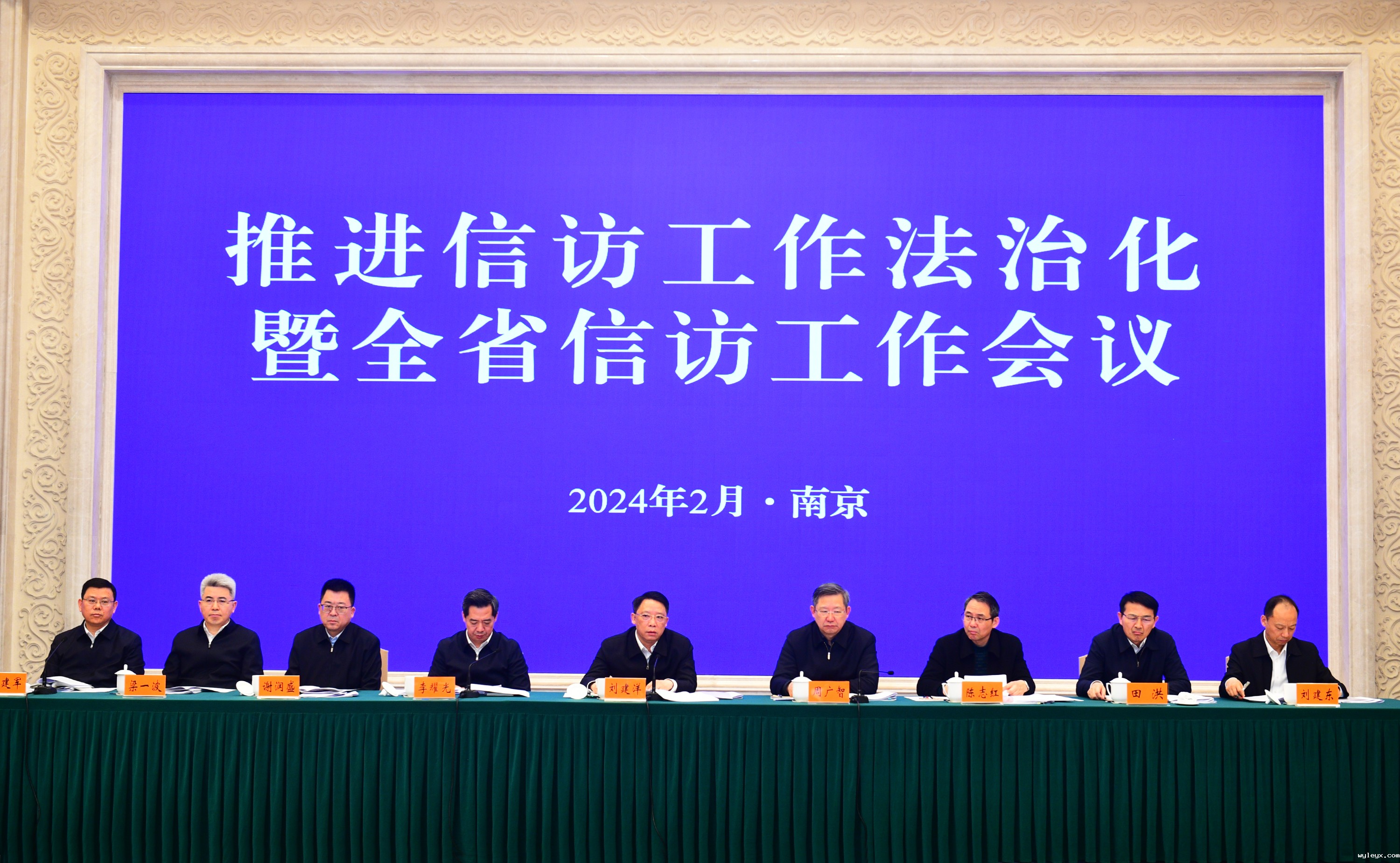 2月4日,推进信访工作法治化暨全省信访工作会议在南京召开,深入学习贯彻习近平法治思想、习近平总书记关于加强和改进人民信访工作的重要思想、习近平总书记对江苏工作重要讲话重要指示精神,贯彻落实中央和省委、省政府部署要求,总结工作,分析形势,研究部署推进信访工作法治化和2024年全省信访工作。会议学习了省委书记信长星、省长许昆林近期对信访工作的讲话要求。省委常委、省委政法委书记、省信访工作联席会议召集人刘建洋出席会议并讲话,强调要把深入学习贯彻习近平总书记重要批示精神作为当前和今后一个时期的重大政治任务,以实际行动坚定拥护“两个确立”、坚决做到“两个维护”,以全面推进信访工作法治化为契机,奋力推进信访工作高质量发展,为谱写“强富美高”新江苏现代化建设新篇章做出更大贡献。省人大常委会副主任、省信访工作联席会议召集人周广智传达了中央有关会议精神。副省长、省信访工作联席会议召集人李耀光主持会议。省委社会工作部部长田洪出席会议。