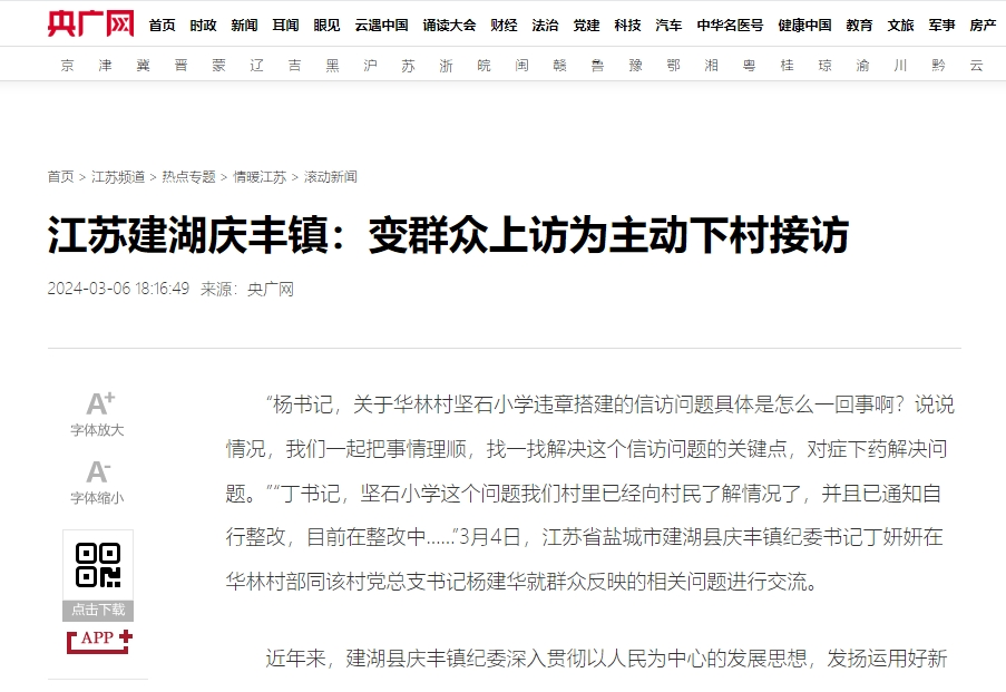 近年来,建湖县庆丰镇纪委深入贯彻以人民为中心的发展思想,发扬运用好新时代“枫桥经验”“浦江经验”,将纪检监察信访工作阵地前移,变坐等群众“上门信访”为主动下村“接访约访”,将监督触角延伸到基层村(居)一线,坚持跟进监督理念,积极探索实践,及时了解掌握第一手民情,用心用情回应群众关切,尽心尽力将信访问题、矛盾纠纷化解在源头、解决在萌芽,真正做到“听民声、察民情、解民忧”,不断增强广大群众的信任度和获得感。